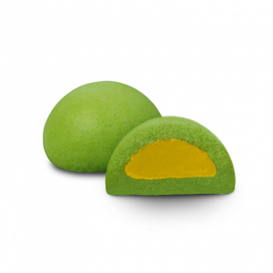 Kacang Ijo - Dengan varian Kacang Ijo dari Mataram Bakpia Kukus dengan bolu lembut rasa Kacang Ijo dengan isian Custard Kacang Ijo padat  didalamnya.